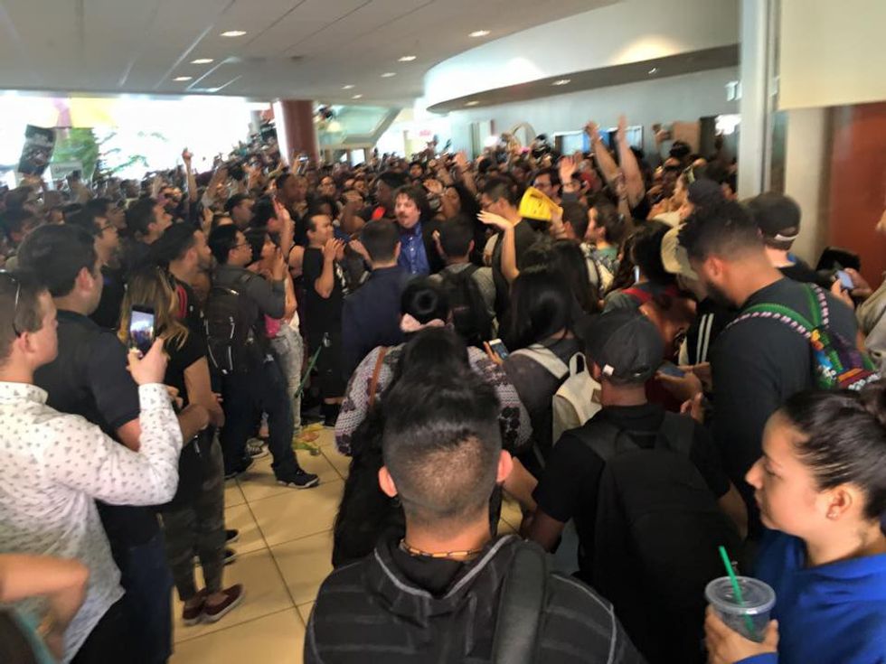 Above: Students at CSULA block the entrance to the theater where conservative pundit Ben Shapiro was supposed to speak (2/25/2016 Photo courtesy of Michael Knowles)
