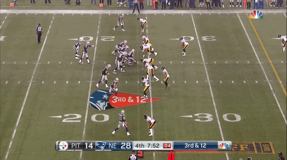Brady gets everybody lined up, runs down his 25 seconds, and starts the play.