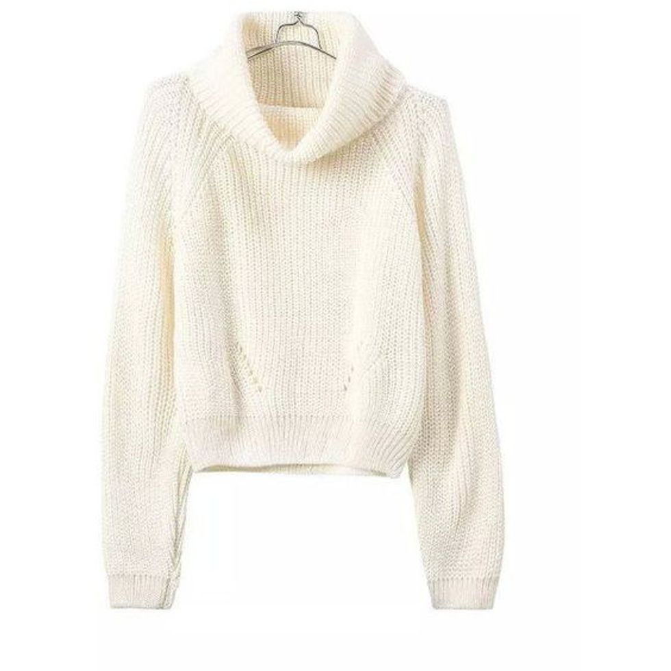 4. This is a article of clothing rather than an accessory but it can be worn so many different ways. You can pair any color with it shoe wise. It is a cream, oversize turtle neck sweater.