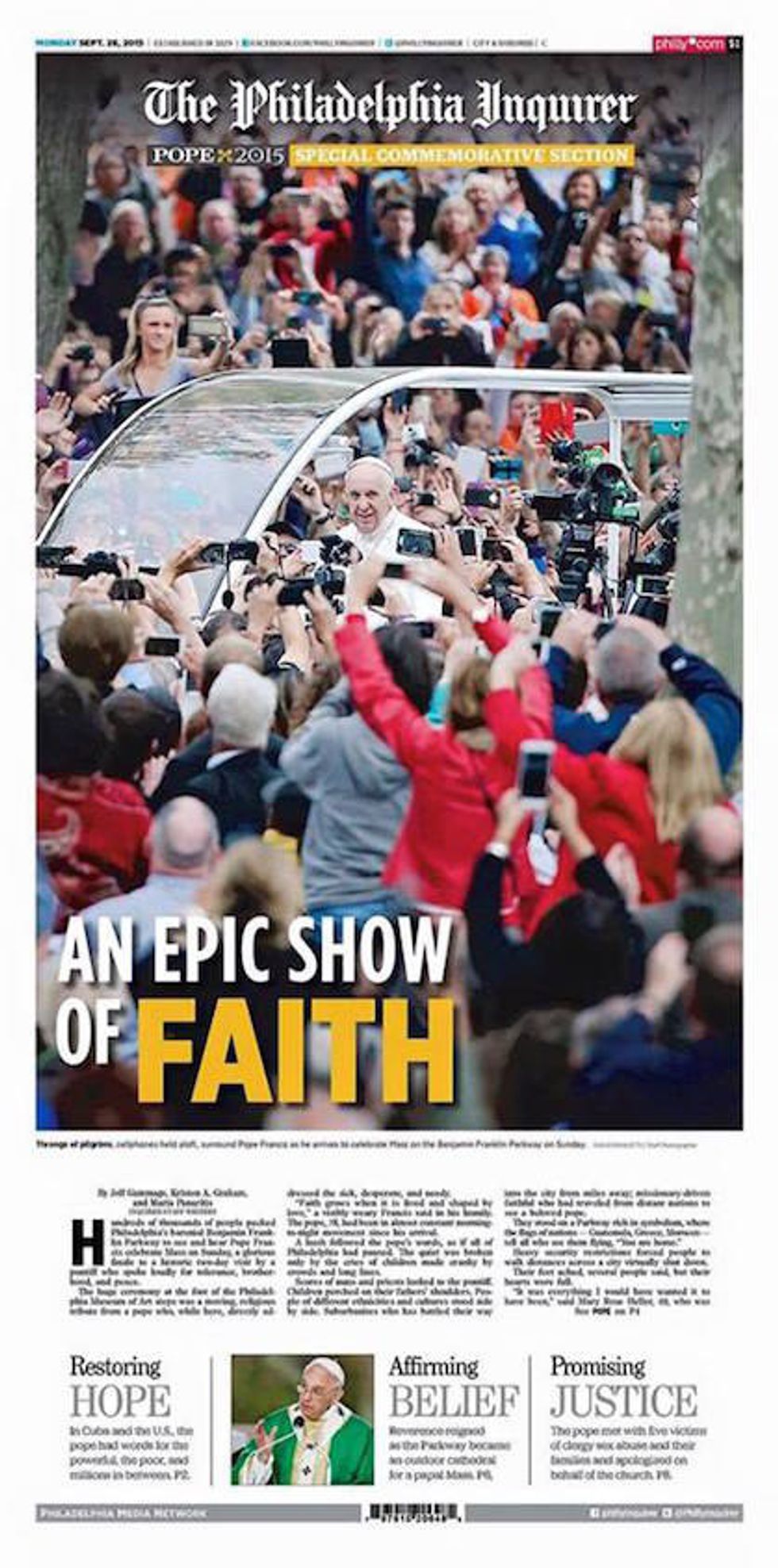 JMU journalism graduate Jeff Gammage ('82) was recently part of the Philadelphia Inquirer's coverage of Pope Francis' visit to the city. We asked him to reflect on the coverage.
