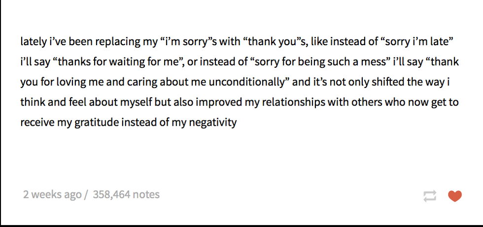 It's easy to throw around the word sorry when in reality you did nothing to be sorry for. A Tumblr user's attempt at giving up this phrase inspired me: