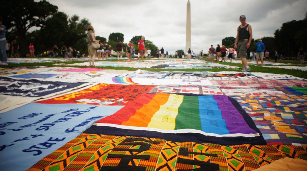 The AIDS Quilt is set out in Washington D.D., with thousands of panels dedicated to commemorate people who have died of AIDs.