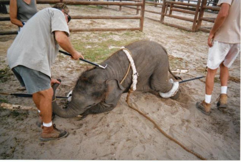 It is not just illegally that elephants are hurt. Circus acts that include elephants are very damaging to the animal as well. The elephants are forever scarred by the acts put on in the circus. In order to "successfully" do their tricks, elephants are whipped and chained and poked by bull-hooks. The bull-hooks are essentially a cane with a nail attached to the end. The elephants are followed by this hook in order to walk in a straight line and do other various "circus" tasks. If done incorrectly, the elephant will get maimed by the hook. Elephants who live and travel with the circus live in their own personal hell, and a cycle of cruelty and pain. On the off chance the elephants are let out of their circus enclosure, they are required to walk around with chains on their feet. A place where one is being beaten into submission is not a safe environment for any animal to live in. This is only how the circus cruelty starts: baby elephants are taken away from their mother, depriving them from nurture, and if the bull-hook is not enough, they are electroshocked.