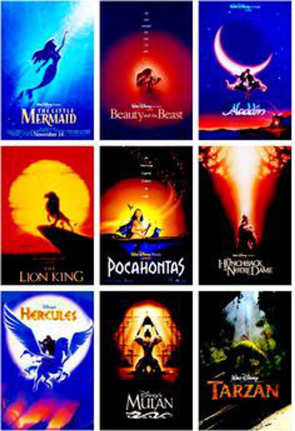 Also known as "The Little Mermaid," "The Rescuers Down Under," "Beauty and the Beast," "Aladdin," "The Lion King," "Pocahontas," "The Hunchback of Notre Dame," "Hercules," "Mulan," and "Tarzan." Sure, some of these movies might have their faults, but I love them to pieces and remember watching them on VHS over and over and over again.