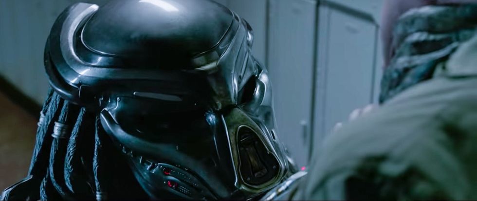 The Super Predator won't be the only foe that the predator is going to be facing, and this next one will be bringing a blood feud. Jake Busey will be entering the brawl as the son of Peter Keys, whose father, Gary Busey, originally portrayed Peter Key's father in the movie. Keys was a member of OWLF, Other World Lifeform. If you're still unsure of who he is, he's the one who died by the Predators killer Frisbee in that awesome meat house scene of "Predator 2". This won't be the first point of Predator lore that is being given a major nod to. If you didn't notice in the trailer, in the display case of Predator technology, is the Elder Predators combistick that was given to Alex Woods (portrayed by the talented Sanaa Lathan) from the first "Alien vs Predator." Additionally, although I can't confirm this, this movie will also feature a huge Easter egg and reference to this universe's other nasty inhabitant, the Alien.