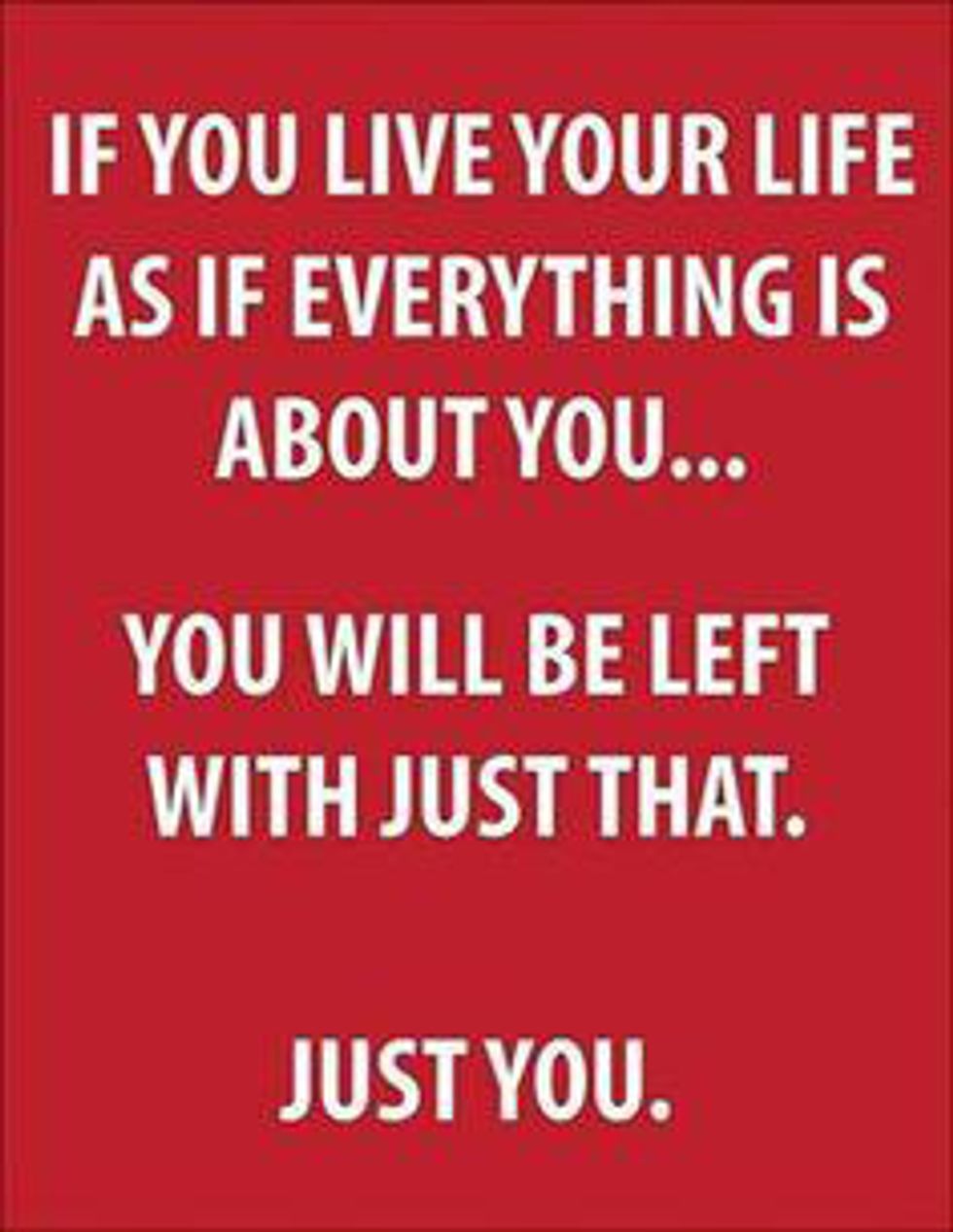 Our generation gets hated on for lots of things these days. If you were to ask your grandparents what they think of kids today they would probably say we are lazy, dependent on technology or something of that nature. This may be true of some people and untrue of others. Some of my peers are the hardest working people I know and the term “lazy” is the last thing I would think of when I think of them while others I could see it applying to. Some of my peers hate technology, still have a flip phone and buy the paper copy of all of their text books. “Dependent on technology” is the last thing I would think of when I think of them, yet others barely look up from their iPhone screen long enough to order food at the restaurant. These two characteristics seem applicable on a case by case basis. What I do think is a characteristic of “today’s kids” that holds true in more than the majority of cases is that we are selfish. I’m guilty of it. It is so much more favorable to put our needs first, but this is where we run into issues.