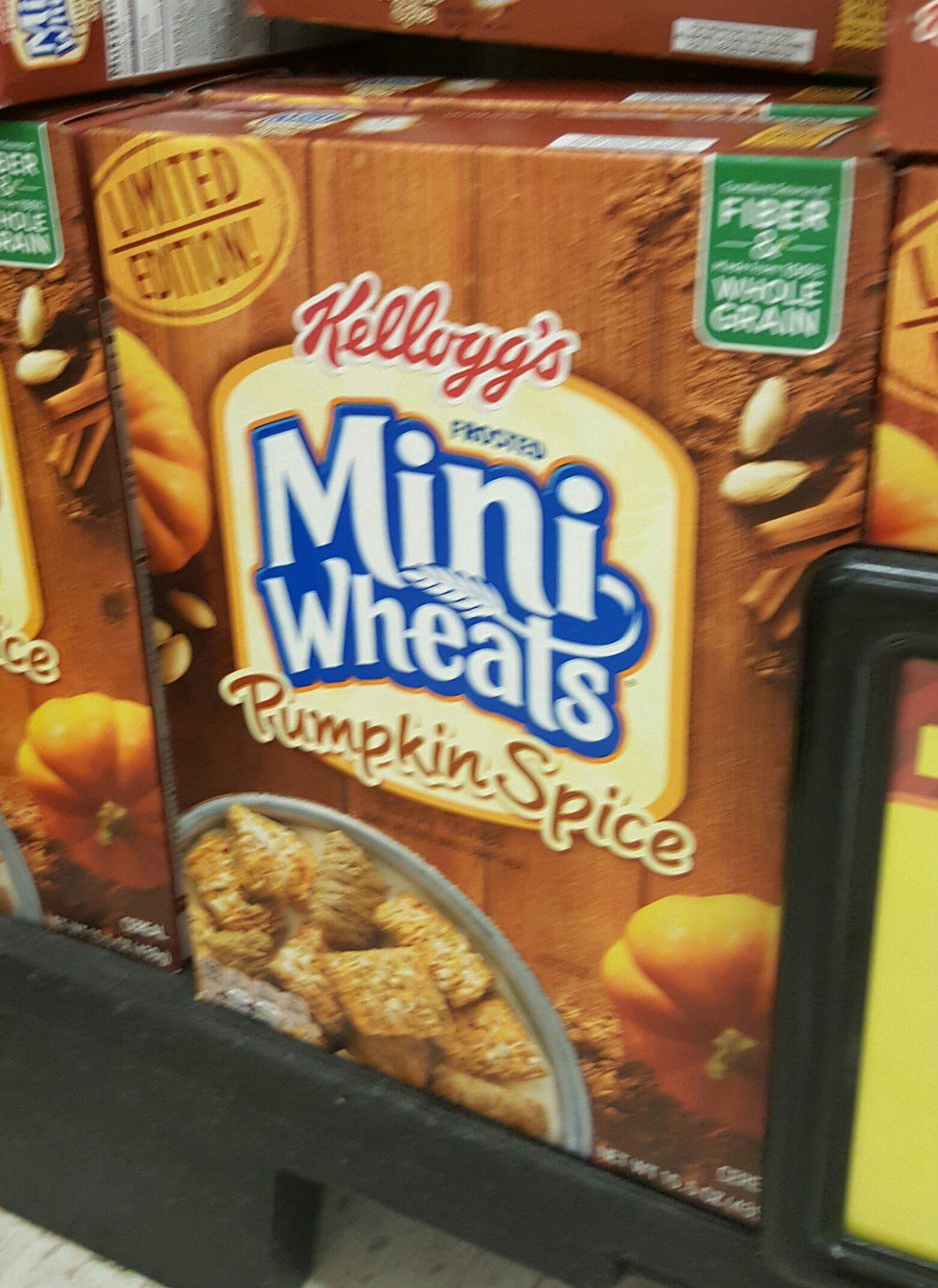 The pumpkin spice has taken over the cereal aisle too. Well done Mini Wheats, well done. This cereal looks tasty, and this was the only pumpkin spice cereal I saw in the store. I wonder how this will do with consumers. Would you buy this cereal?
