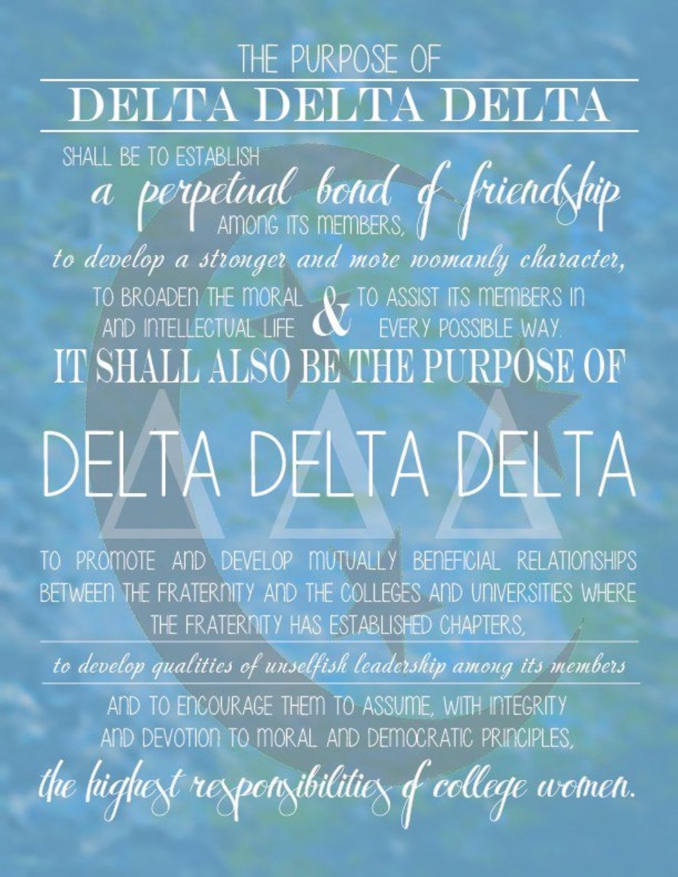 The Purpose of Delta Delta Delta is near and dear to the hearts of all of her members for all of their days.