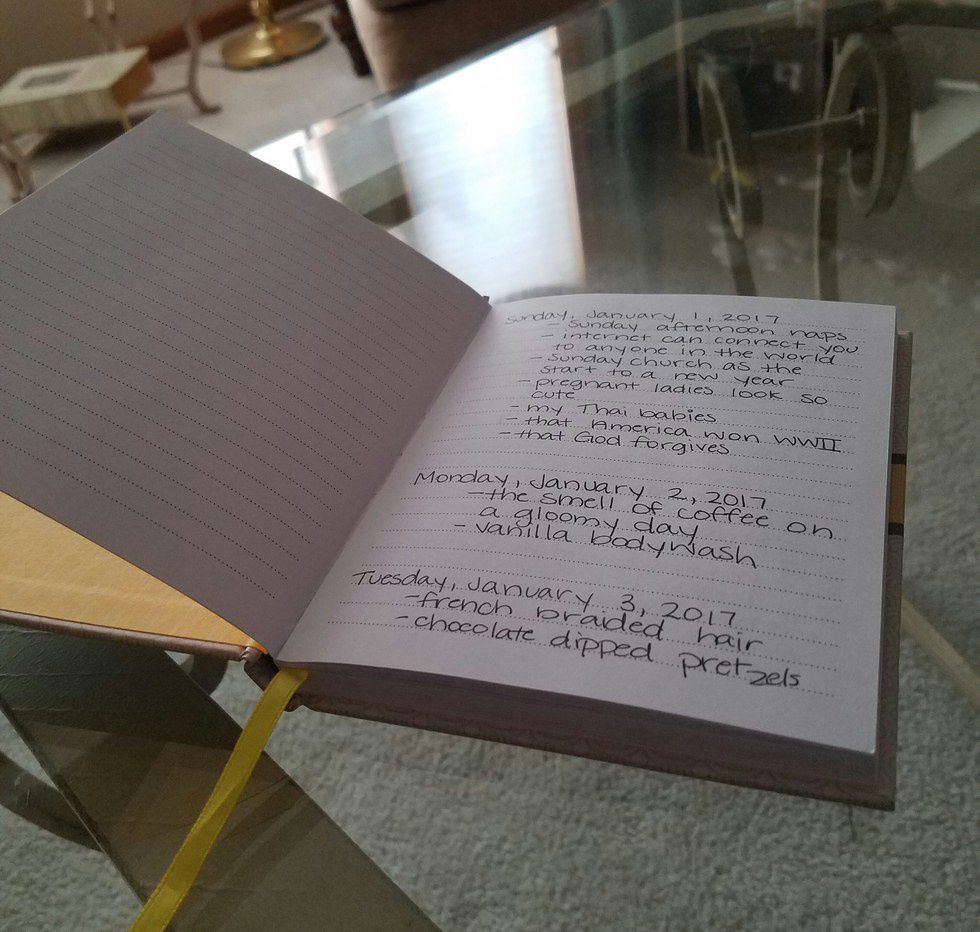 How have I tried to do this? I bought a journal, and everyday since January 1, I have faithfully written down things that have made me happy during the day. I did make some rules for myself because I did not want the journal itself to become something that makes me unhappy. The first is that I have limited myself to only using bullet point responses that more often than not are not complete sentences and do not have grammatical punctuation. Second, the things that I write must be relative to that specific day. This keeps me from being generic with my answers and forces me to really think about things that happened that day. Finally, I am allowing myself to write super sappy and cliché things that make me happy (because honestly, who doesn’t love the smell of coffee on a gloomy day?).