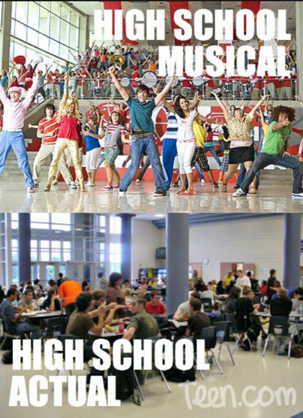Oh, and the most important lesson to learn during your freshman year? Real life high school is nothing like "High School Musical." Nobody breaks out into song randomly and the merging of cliques is not some huge ordeal that changes the entire dynamic of a school. People don't change who they are just because of one person and sometimes people aren't who you think they are. Do not believe that your high school experience is going to be anything like the movies because it only builds you up for disappointment.