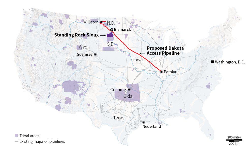 Unfortunately, the pipeline runs through the Standing Rock Sioux Tribe's land, and it threatens their environmental and economic well-being, and would damage/destroy their sites of historic, religious, and cultural significance.