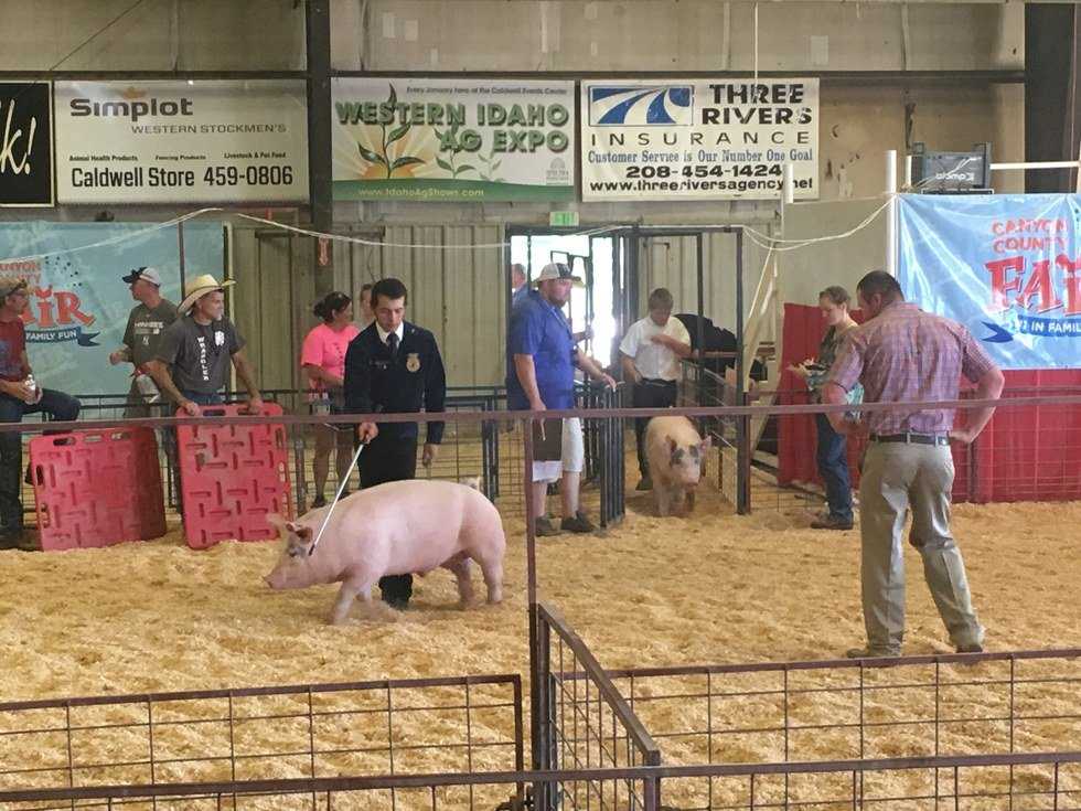 Welcome to the Canyon County Fair. Before the rides, the music, and the smell of greasy food fills the air the true meaning of the fair begins. On the far side of the animal barns theres a ruckus ensuing. Here come the hogs.