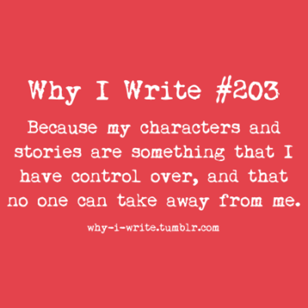There is absolutely nothing wrong with having multiple reasons for doing something. If there was, then I'd be in big trouble, because I have multiple reasons for why I write. My brain hurts just thinking about how much it will take to condense my reasons into one hell of a run-on sentence. So here goes. This is why I write.