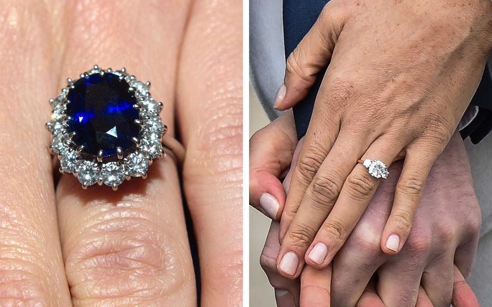 Kate’s ring is a navy blue, oval ring with jewels bordered around it. Not your traditional engagement ring, but unique, beautiful, and vintage. Meghan’s ring has a big diamond in the center and two smaller jewels on each side. Both ring styles can reflect the boys’ sense of style as well.
