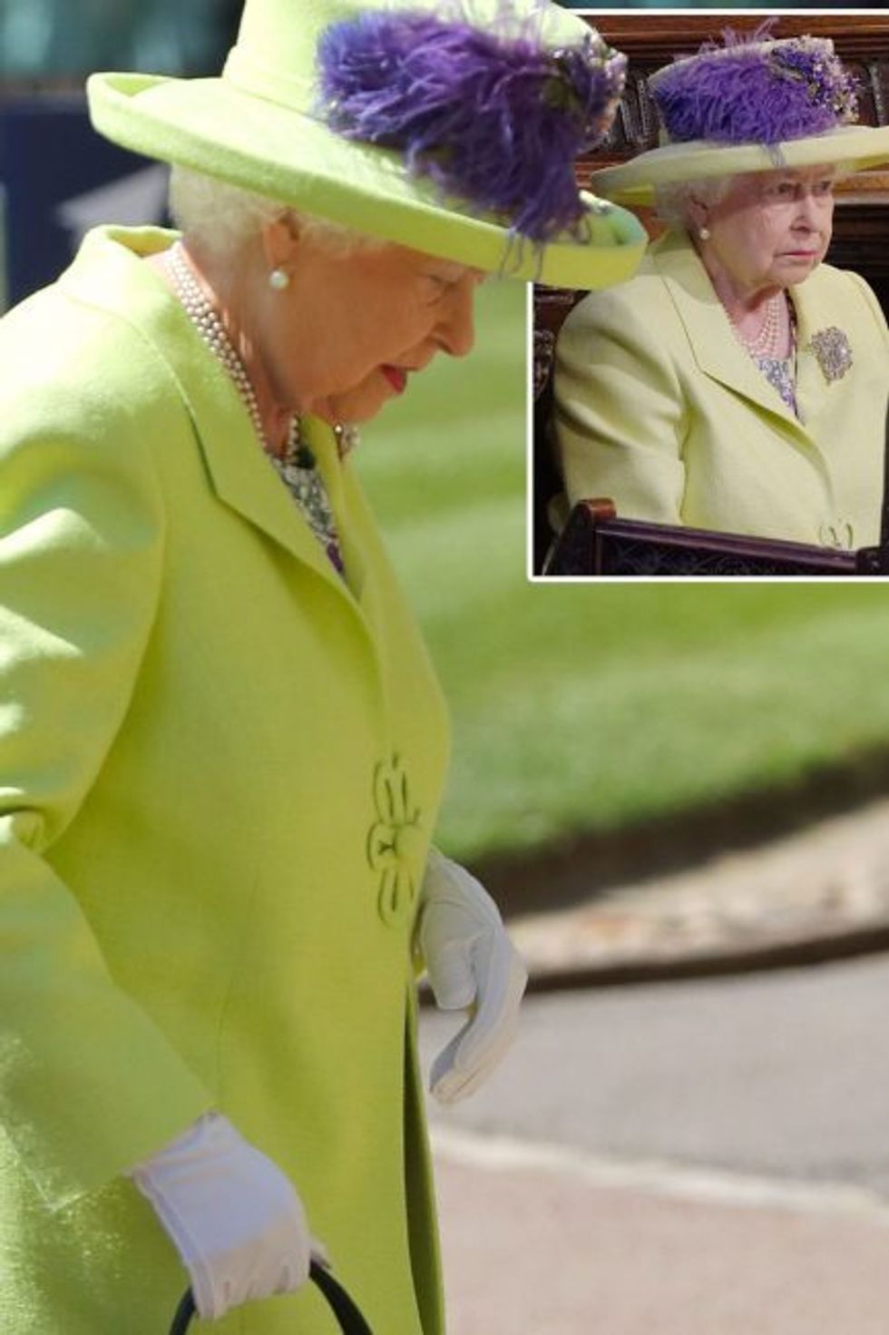 In 2018, she wore a pale green dress with a flower-designed button and matching hat with a lovely purple feather. Get it, Queen!