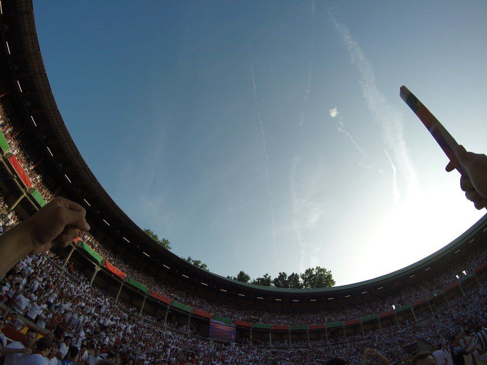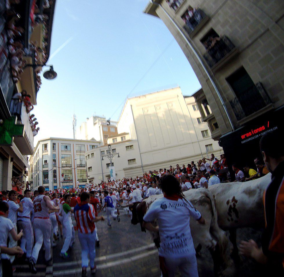 Running with the bulls is an adrenaline-filled, slightly stupid idea that I completely recommend you should do if you are considering it. Just make sure you are not reckless about it. The large majority of people who get hurt end up doing so because they stay awake drinking all night and are probably not functioning humans when the race begins at 8 am on the 7th. We slept about 5.5 hours and did not drink the night before. We each had a Red Bull in the morning and we were ready to go. Plaza Consistorial is also the meeting spot for the racers. You should be in by around 7:15 since the police won’t let you in after 7:30 - better not to cut it close. The biggest concern in the race is staying on your feet. This is tough because it is kind of an every-man-for-himself situation.
