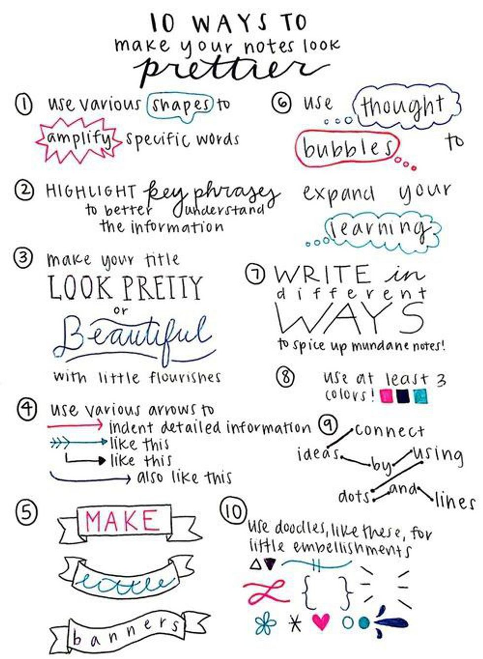 Everyone has their own way of studying; mine happens to be note-taking. I've noticed if I make my notes look more appealing, especially with key terms, I remember them better. Remember to keep it functional and clean!