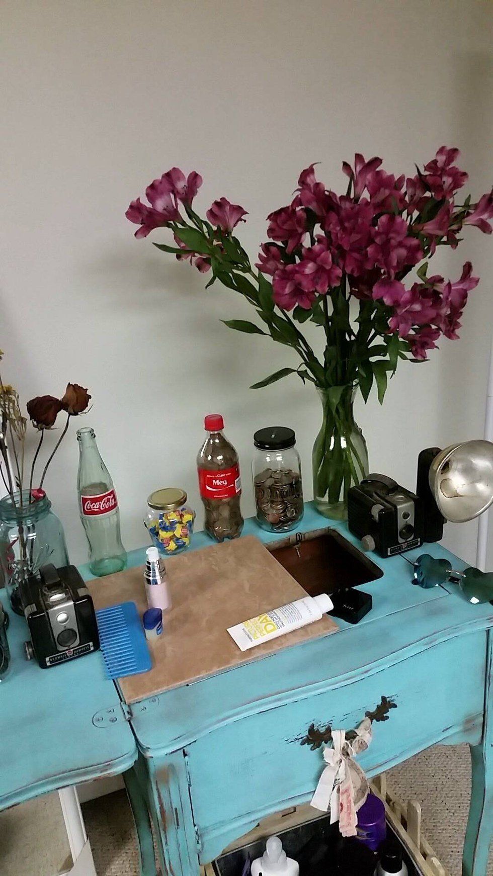 I leave them to toss petals down on my carpet you see