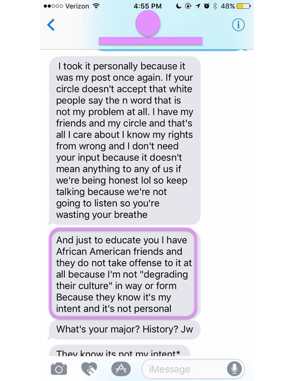 I shouldn’t need to point out the obvious, but “n****” is NOT a word that should even be in your vocabulary, especially not your daily vocabulary. Also, fun fact: saying you have “African American friends” that do not take offense to it at all because you’re “not degrading their culture in any way or form” does NOT make it OK for you to use it.