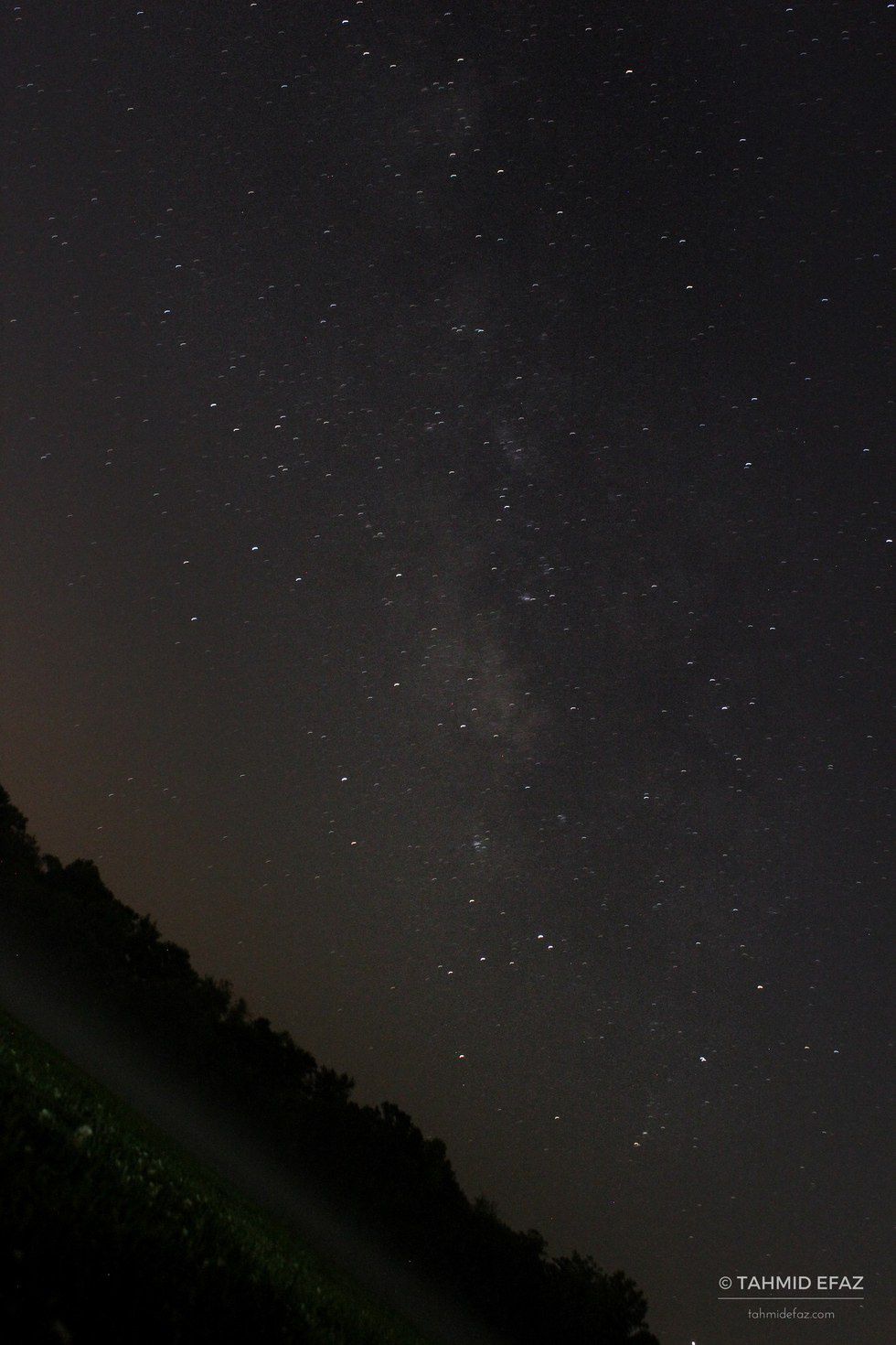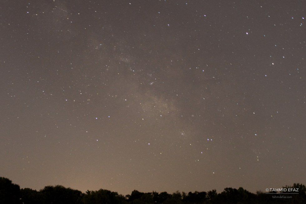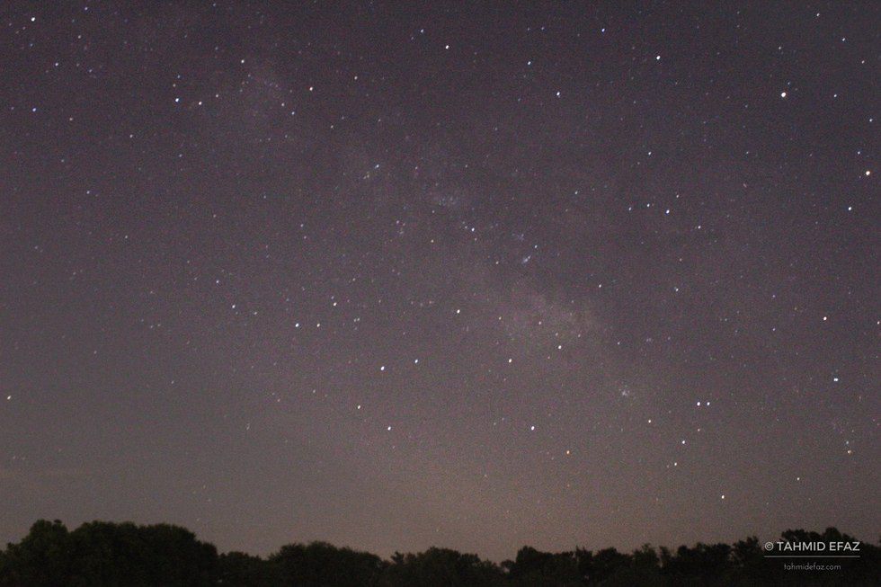 It was two in the morning on a summer night when I first tried my luck with catching the Milky Way with my camera. After a lot of setbacks, I was able to get the shots that I needed. The most annoying thing was the light pollution from the nearby cities. The light pollution overexposes the sky and thereby making the Milky Way very hard to see. As it was almost time for moonrise, I had to race against time to take my shots. The Moon, like the light pollution from the cities, make the sky brighter and thereby making the stars hard to see. Here, from the east coast, the Milky Way is very hard to see with the naked eye. I used special astronomical software to get the exact location of the Milky Way in the night sky. I also had to do some heavy post processing using image editing software in order to highlight the Milky Way. The pictures were taken from the Alumni Fields of Berea College.