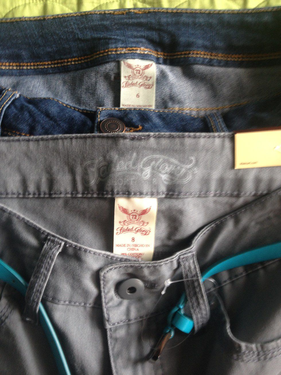 As you can see, the top pair is almost an inch smaller than the bottom pair around the waist.