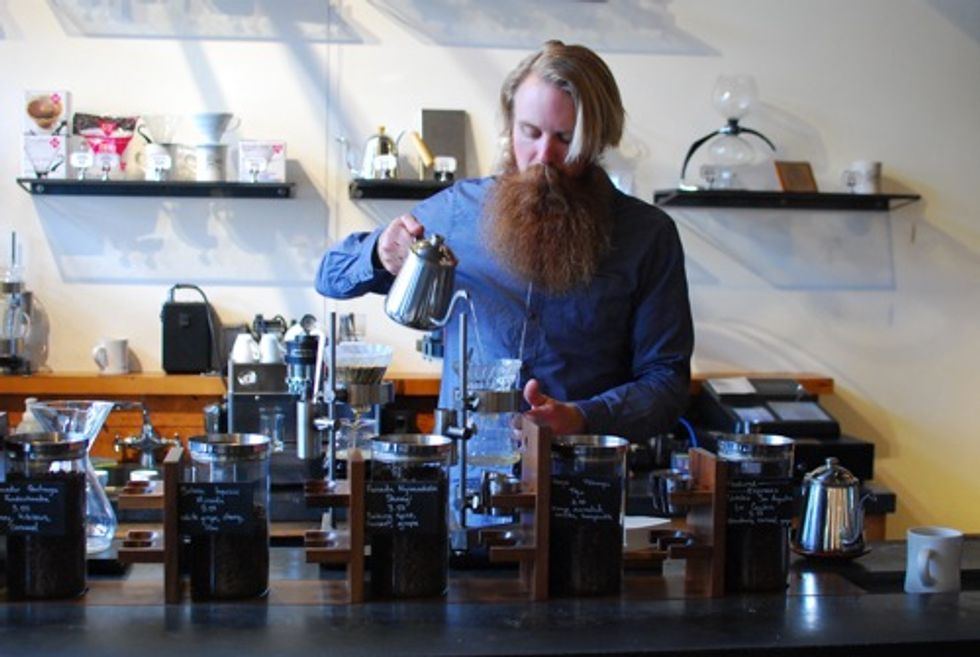 Along with Philz and Blue Bottle, which also have various locations in the city, Four Barrel is one of the best San Francisco coffee shops I've tried so far. Not only is the coffee great (I really enjoyed the latte), but so is the iconically-hipster SF vibe. Don't believe me? Check out the guy pouring coffee below.