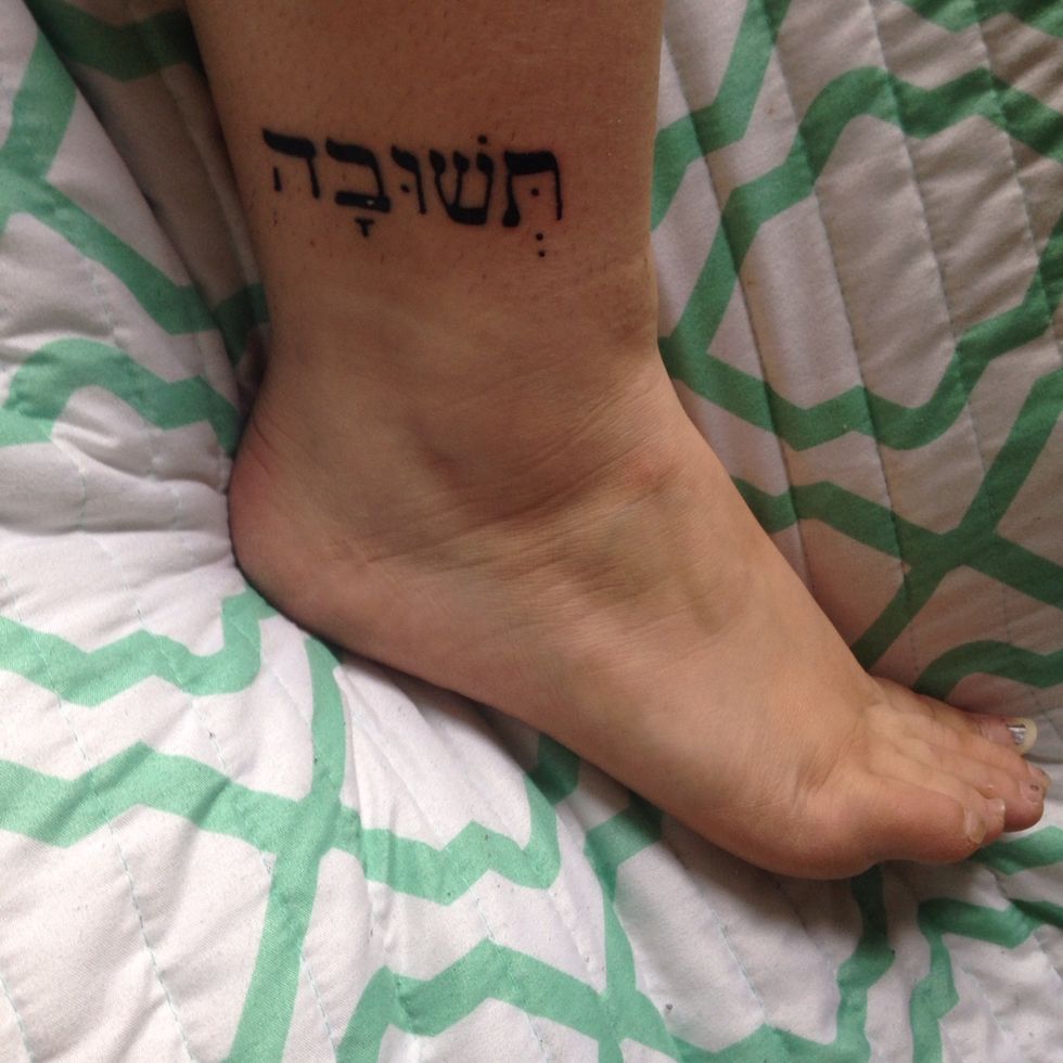 My second tattoo was on my ankle, and it reads "T'shuvah" in hebrew.