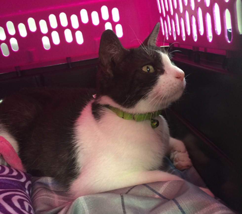 Off to a new place, hm? Quite normal, quite calm for a cat in a carrier.