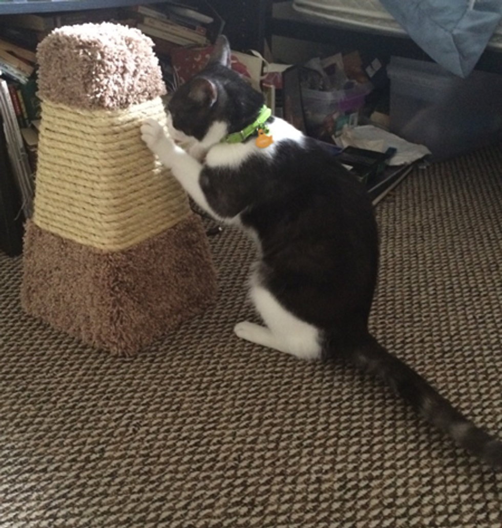 She was also given a nice thing to scratch, even being encouraged to do so! How odd, most humans seemed to dislike her claws. This one was quite pleased to see her playing.