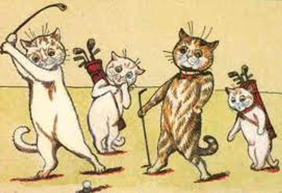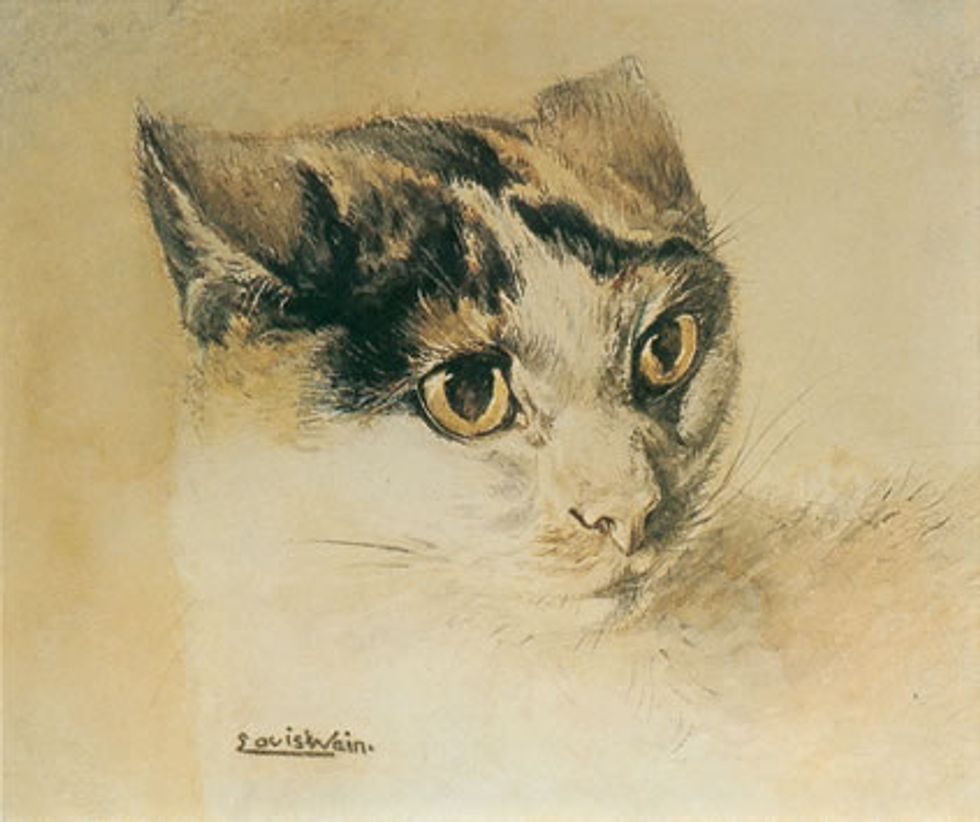 Louis Wain (1860-1939) was an English artist, primarily known for his drawings of cats, often in an anthropomorphic style, using flexible, humanlike expressions and often walking upon two legs.