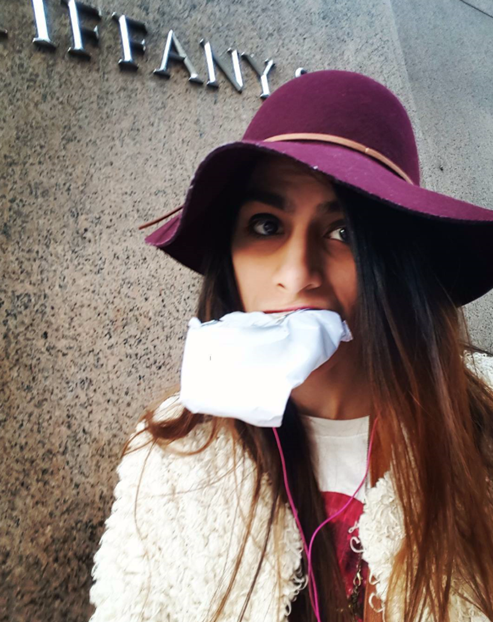 I looked at the name on the building, took out my phone, stuffed a sandwich in my mouth, and had breakfast at Tiffany’s.