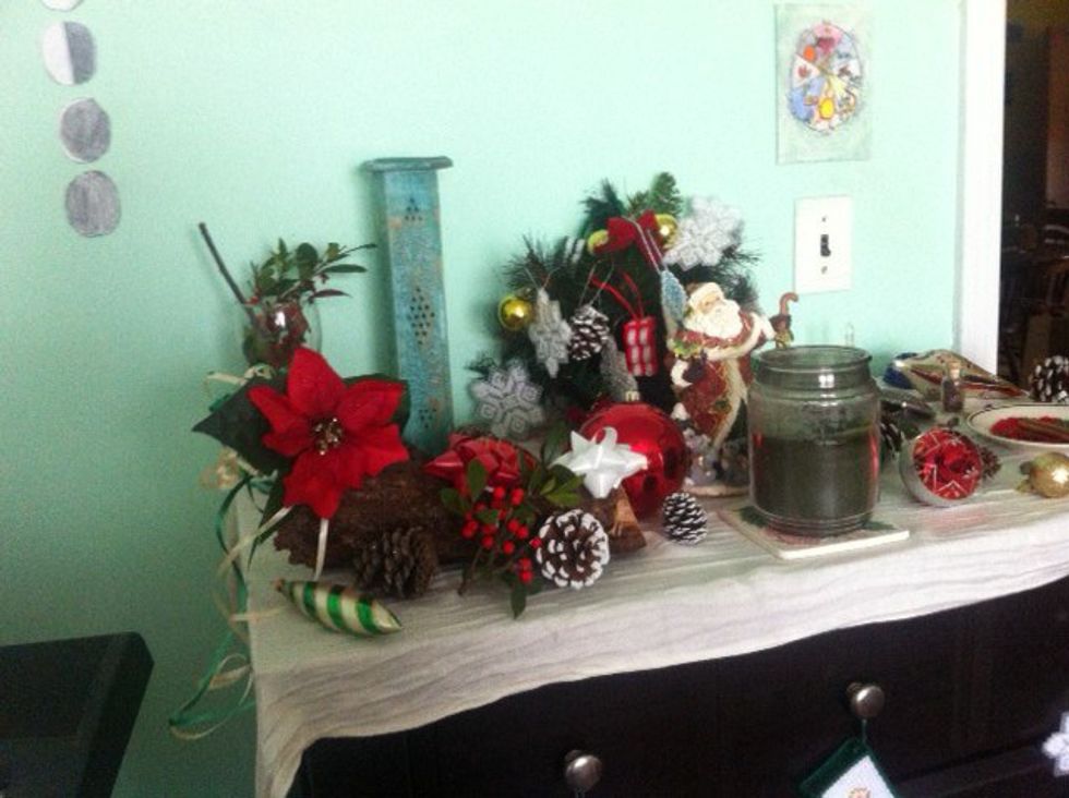 When you look at these pagan altars, you can see the similarities between Yule and Christmas imagery: snow, ribbons, candles, evergreens, etc. My personal altar features similar aspects, such as candles, ornaments, and even a small tree.