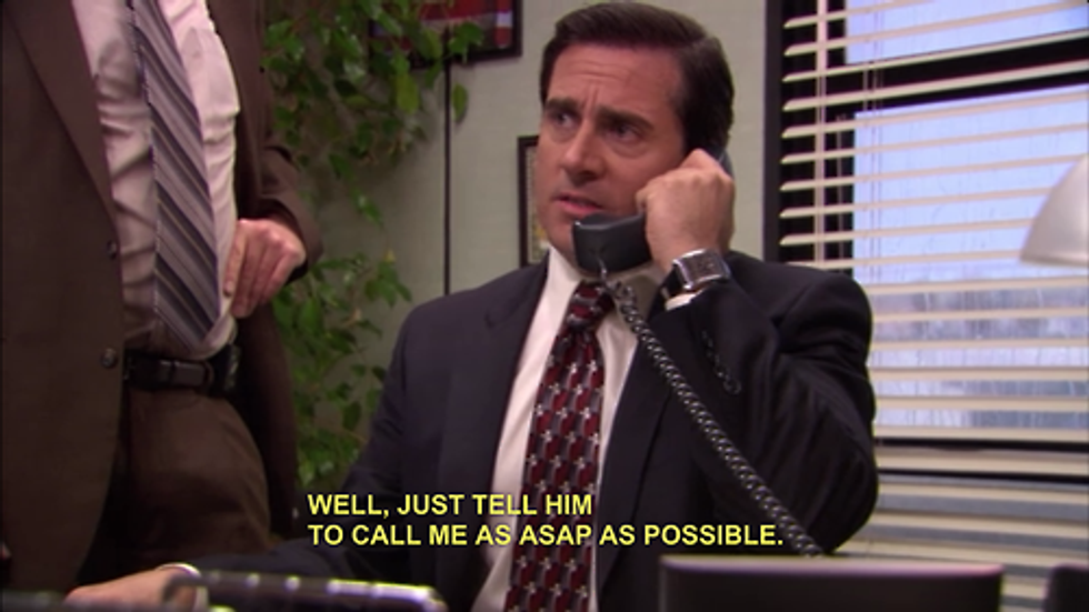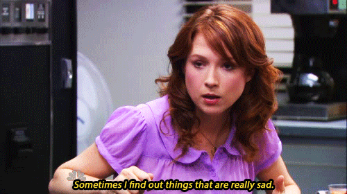 When I accepted the offer for a five-month internship with my dream company for my first post-grad job, I thought it would be really easy to stay with the company, networking and moving up and out. It's definitely not as simple as I thought. I've started looking into other options - do I want to move back home? Do I want to move out to Philly, where my boyfriend is? Do I want to stay in Florida? Everything is up in the air, and it's hard not to get stressed. So what do I do when I stress? I watch The Office, and I've found GIFs to describe all the situations I've found myself in this month. Michael, Dwight, Kevin, Kelly ... thank you for understanding.