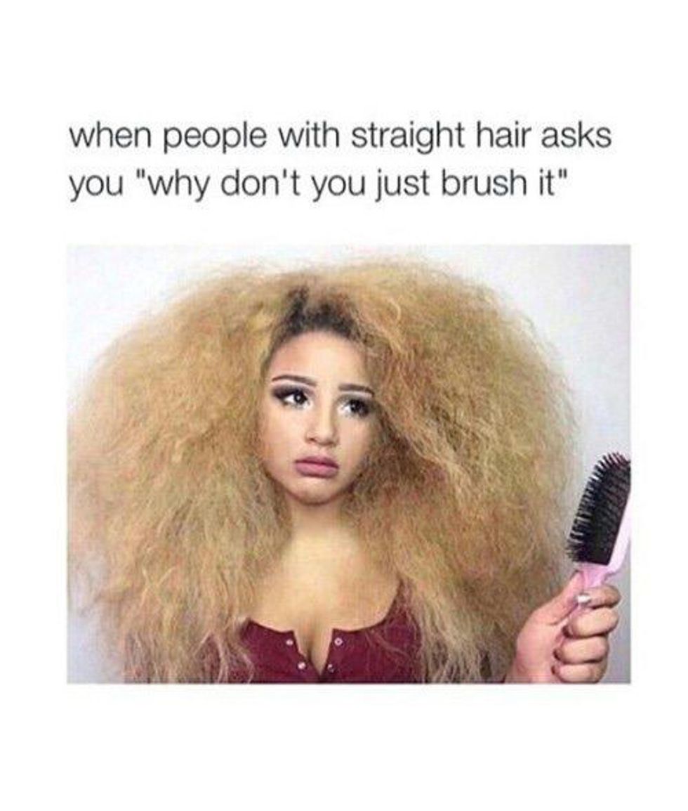 Whenever I am nagging about my hair, my straight-haired friends will just ask, "why don't you just brush it?" Well, the answer is simply because I will look like a huge puffball and the only way to fix that is with, you guessed it, another shower.