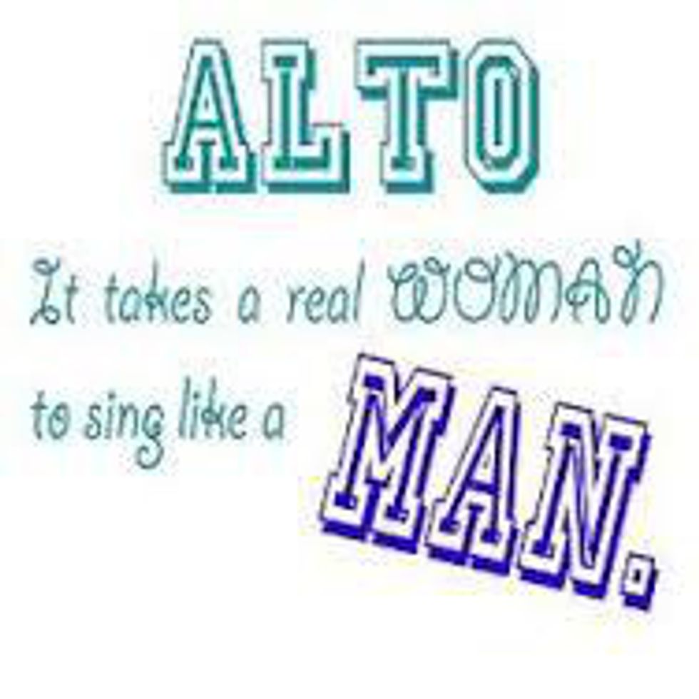 Here is something crazy, most altos can actually hit high notes. The term alto is used as an umbrella term, but in all reality doesn’t fully describe a person’s voice. This isn’t just true for altos; many people are deemed a voice part that may not fully capture all of their talents. I have been called a mezzo-soprano, dramatic soprano, contralto, tenor AND an alto. Don’t judge an alto by their deemed voice part. You never know! An alto may just surprise you with a glass shattering high note.