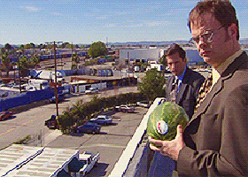 What does throwing a watermelon off the top of a building accomplish, you ask? Well... actually nothing, but it was a fun thing to do and afterwards I knew how to describe the sound of a watermelon exploding, so. I'd say it was pretty successful.