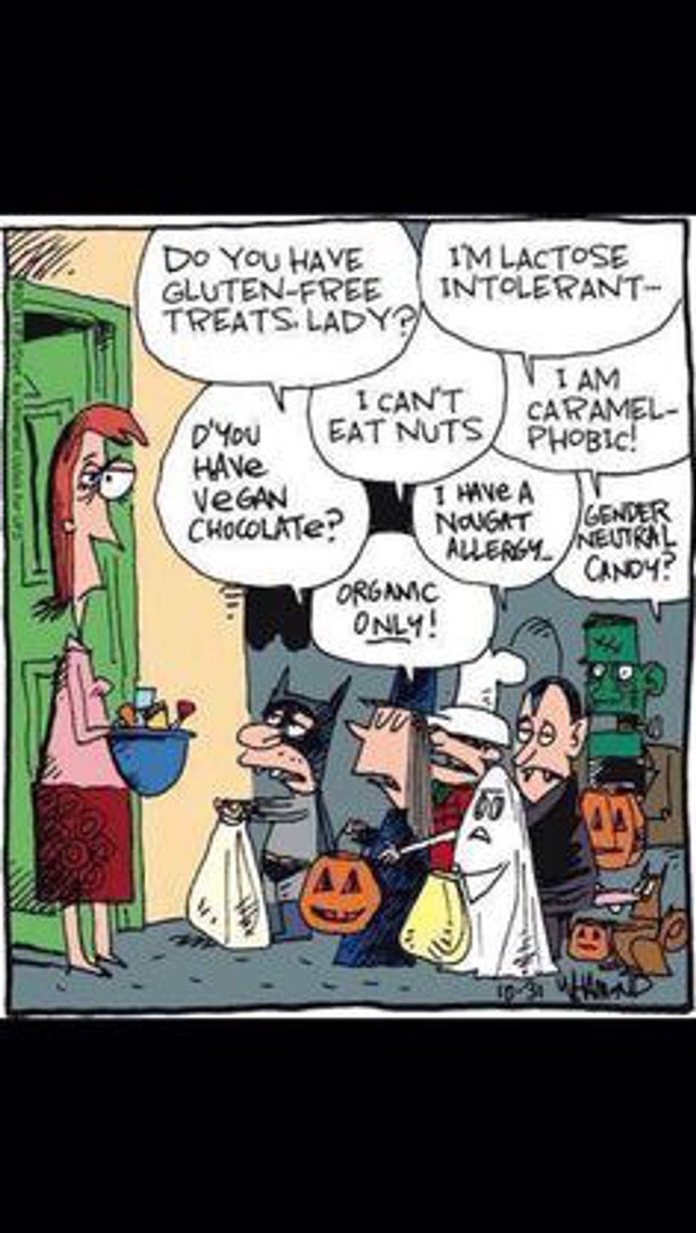 "Halloween was always an exciting time for me as a child. Fun to be out with your friends and plan out what you were going to dress up as. But not so much fun as a mom, more worries about safety- not to mention a huge expense as well as the candy that's going to rot the kid's teeth and give tummy aches, having to police every piece of the three pounds of candy that was collected. The only bright side to Halloween these days, along with giving your Fitbit a good workout, is to be able to spend it with good friends and to keep your kids enjoying it for the same reasons you did."