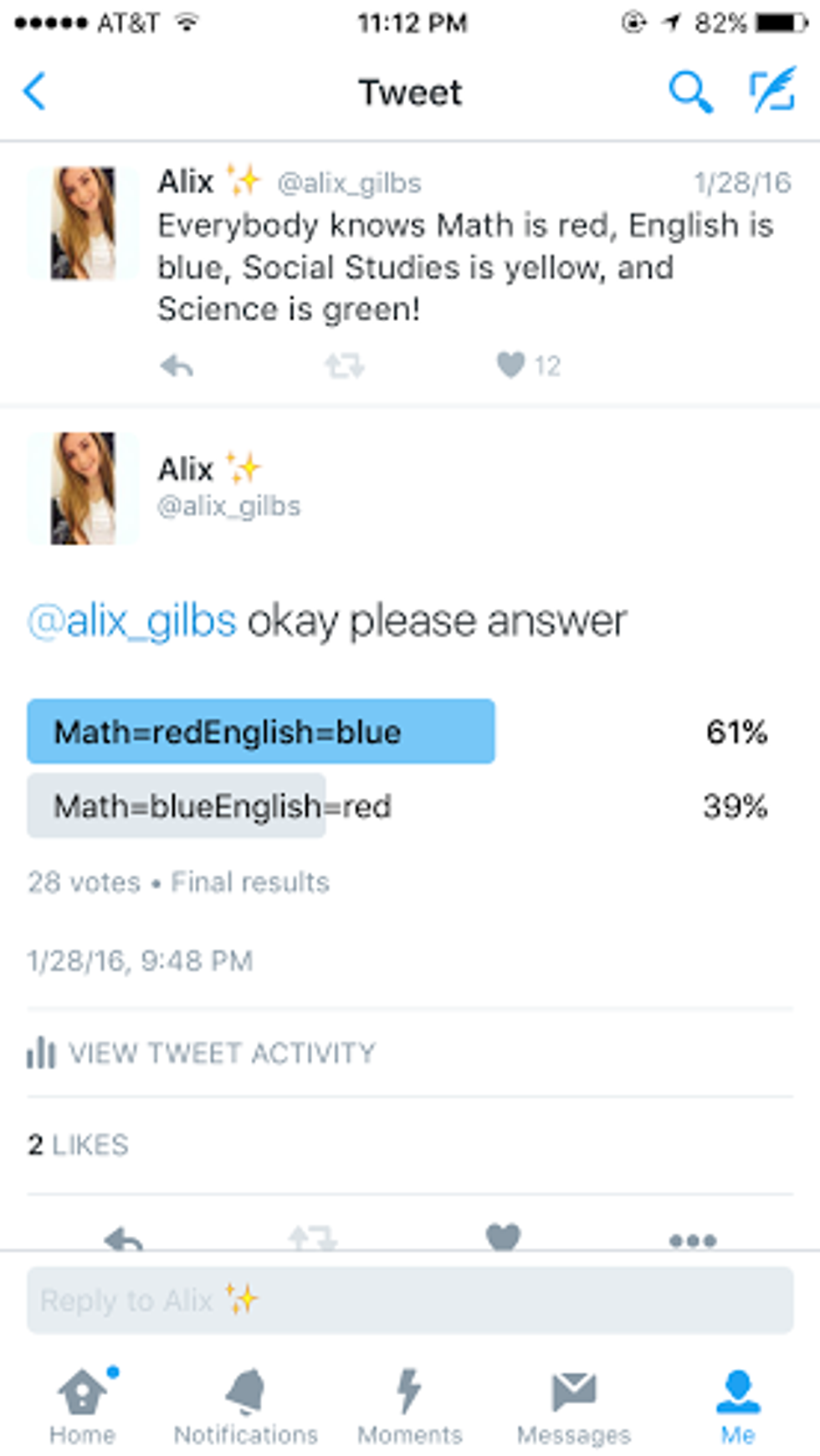 My inspiration for this article was sparked by a poll I conducted on Twitter that was preceded by a tweet outlining how I personally identify each subject by color. There was some debate over the colors that correspond to Math and English, which is what prompted me to create the poll, but the final results reflect my personal opinion, as you can see.