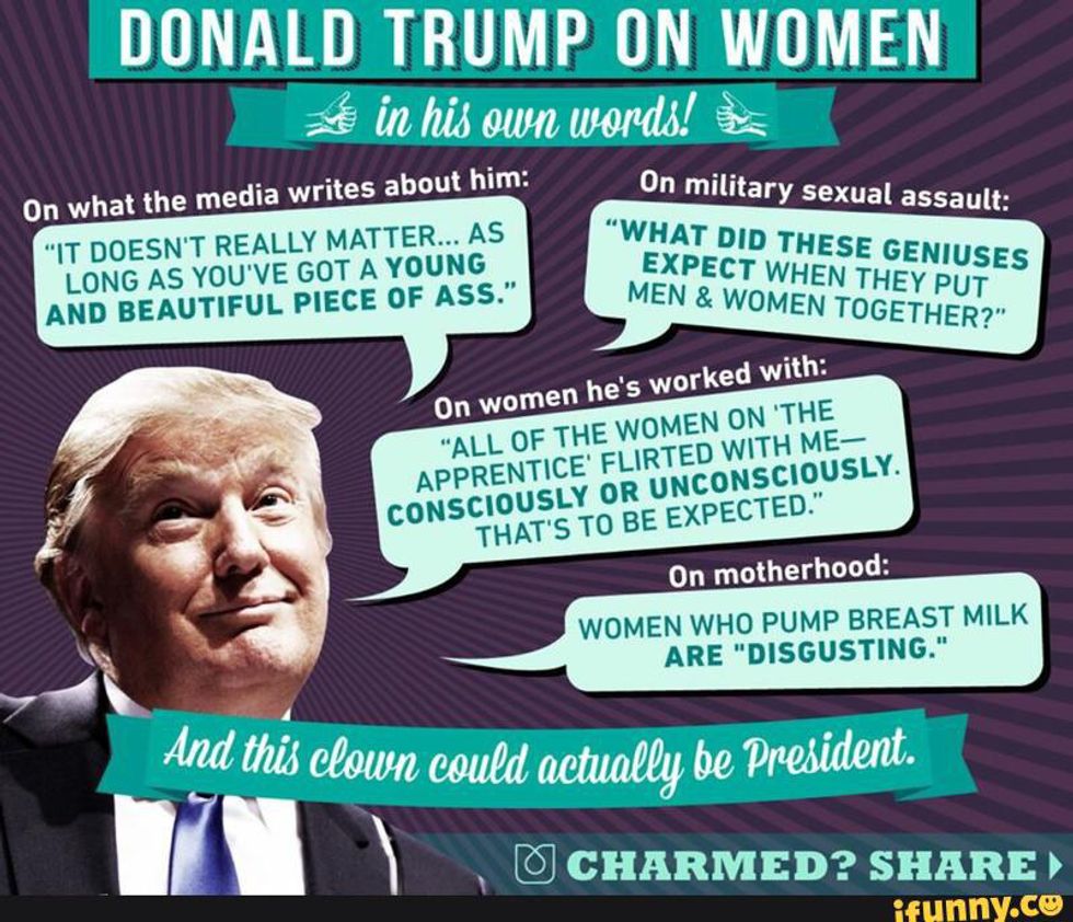 Since the very beginning, the tone of the Trump campaign towards Clinton has been condescending and patronizing, especially when Trump raises alarms about Clinton's health. Accusations that Clinton is secretly sick or lacks the stamina to be President is one the oldest tricks in the book when it comes to criticism about powerful women. Rather than acknowledge the fact that Clinton was the most traveled Secretary of State ever and has had confirmation from her physician that she is healthy, Trump and his cronies continue to show edited clips and biased articles that somehow "prove" that Clinton is sick. Not only are his accusations unfounded but they also prove that when it comes to Trump, there are no other sides to him: he is a sexist pig.