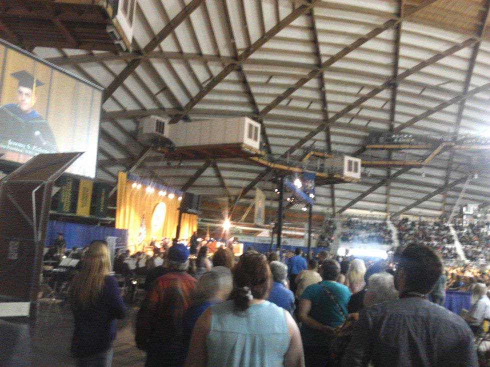 There’s something about being present at graduation that gets your heart pumping at Northern. It’s not just that it’s a fantastically huge ceremony where millions of dollars and years of effort all convalesce into one room, though it certainly helps. It’s just that it takes place where it is more than a room. The hundreds of students graduating fill the seats on the track in the middle, while parents and friends and siblings and aunts, uncles and grandparents fill the stands. A huge platform with towering ferns and flowers and silken drapes in gold and green adorn the stage. Robes of academia billow on the professors and trustees and administrators. The band, wearing all black, give a performance of victory with the age-old songs of “Pomp and Circumstance” and “America the Beautiful” and “Hail Northern.” They also lend their melodies to a chosen singer when the time comes for the National Anthem.