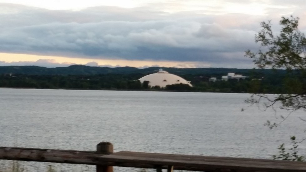 The Superior Dome boasts that it is the largest wooden dome in the world, and the fifth largest dome in the world according to a 2010 world record book. (The other four domes that hold record are made of steel.) Coming into Marquette from US 28, on a clear day it is the first thing you see that distinguishes Marquette from its surroundings. It’s small and far away across the waters of the bay before trees and wood swallow it again. It’s large, shining white, circular and unique, and nestled right on the edge of Lake Superior.