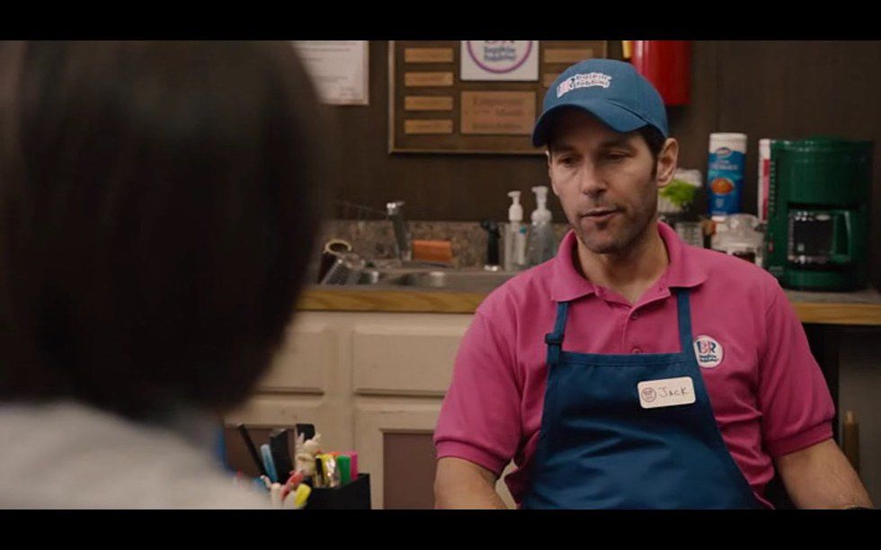 The film centers around master thief Scott Lang (Paul Rudd). We are introduced to Scott on his last day in prison. We learn that Scott is a master thief who has made a name for himself by stealing from billionaires. His friend Luis (Michael Pena) says their is another heist job available for him, but Scott declines. Scott wants to make an honest living now, so he can earn visitation rights to see his young daughter Cassie (Abby Ryder Fortson). Scott tells Luis that he has a "masters degree in electrical engineering, I'll be fine". We then cut to Scott working behind the counter at a Baskin Robbins (anyone who's graduated college knows how that scene is all too real). Scott is later brought to the manager's office and after a funny back-and-forth between him and the manager (Gregg Turkington) Scott is informed that he has been fired.