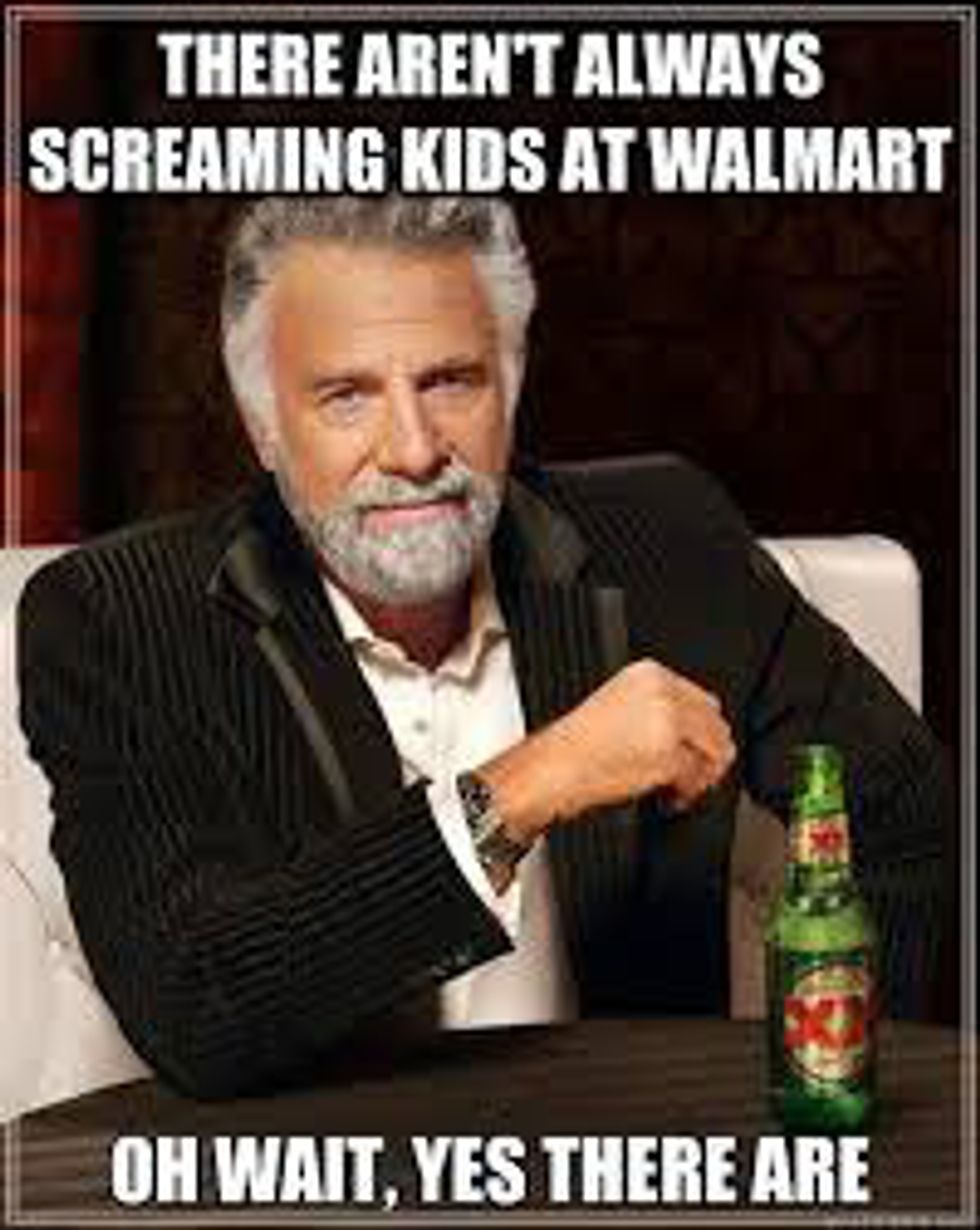 Mmm good, screaming children. I'd be annoyed if I wasn't internally screaming as well. I wish I could free my screams like that child. Don't shush him, no, let him emote himself. Let him scream, and let Walmart know.