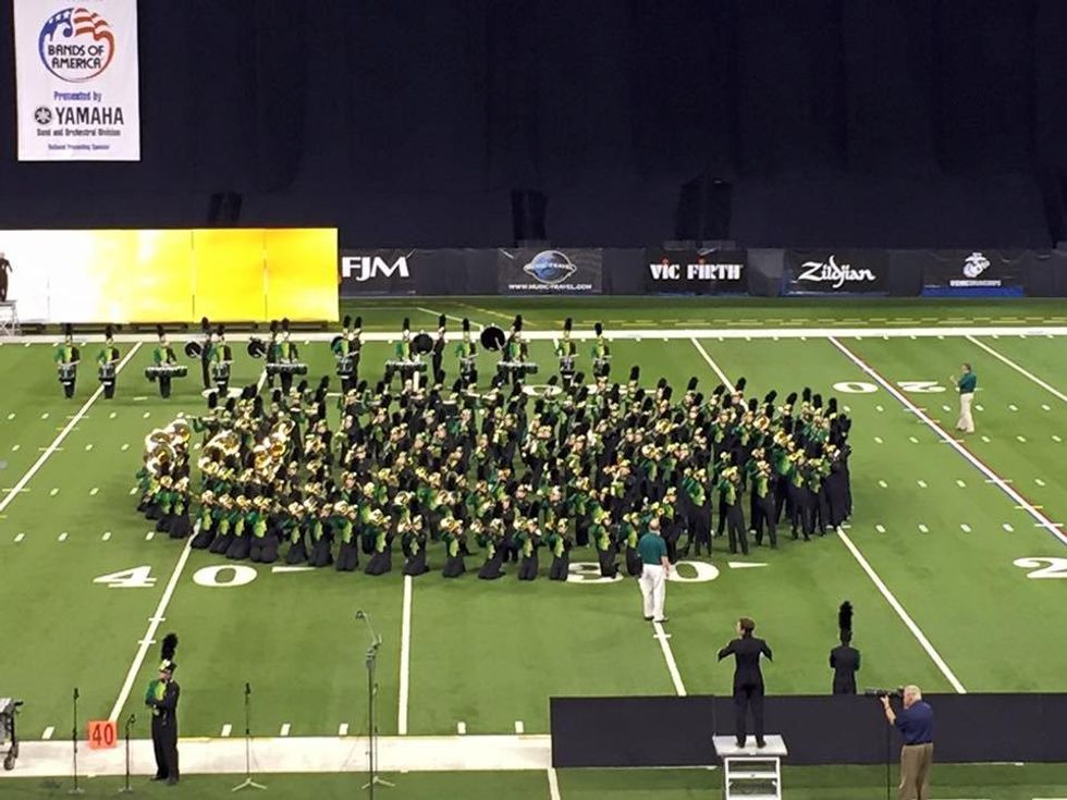 The music grows in anticipation, full of dissonances and crescendos. Suddenly, the band turns around to face the audience in full uniform, blasting a melody that sounds like an amazed child looking at the most magnificent thing they have ever witnessed. Our company moves together as one, advancing towards the crowd, looking as though we will never stop. Once again, the music shifts, this time into a panic. We move more quickly than any of us ever thought possible, then begin an eight step dance that took us hours of hard labor in ninety-five-degree heat to learn. Although the crowd applauds, no one dares lose their focus. We turn away from the crowd and run as fast as we can to our next set, most making it within eight counts.