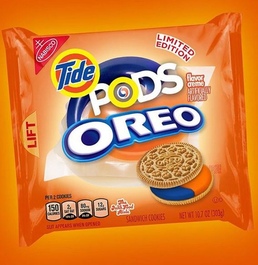 There is now an Oreo package going around with orange, white, and blue filling to represent the dang pod. Although these aren't real, it has come to people wanting them to be.