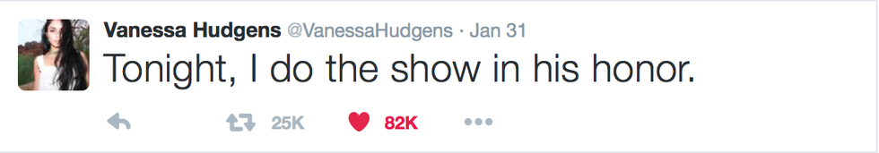 Vanessa, stunning in every aspect, performed the whole show without ever giving off a hint of sadness. She was glowing every moment that she was on screen. What shocked people most, was her performance of the ever-so-emotional song, "There Are Worse Things I Could Do." There wasn't a single moment in this song that she broke. Her voice was strong; she was in-character and only teared up for the circumstances of Rizzo, not for the circumstances of Vanessa. This is what it means to have the show go on. This is what it means to leave your personal life at the door. This is what it means to be a professional.