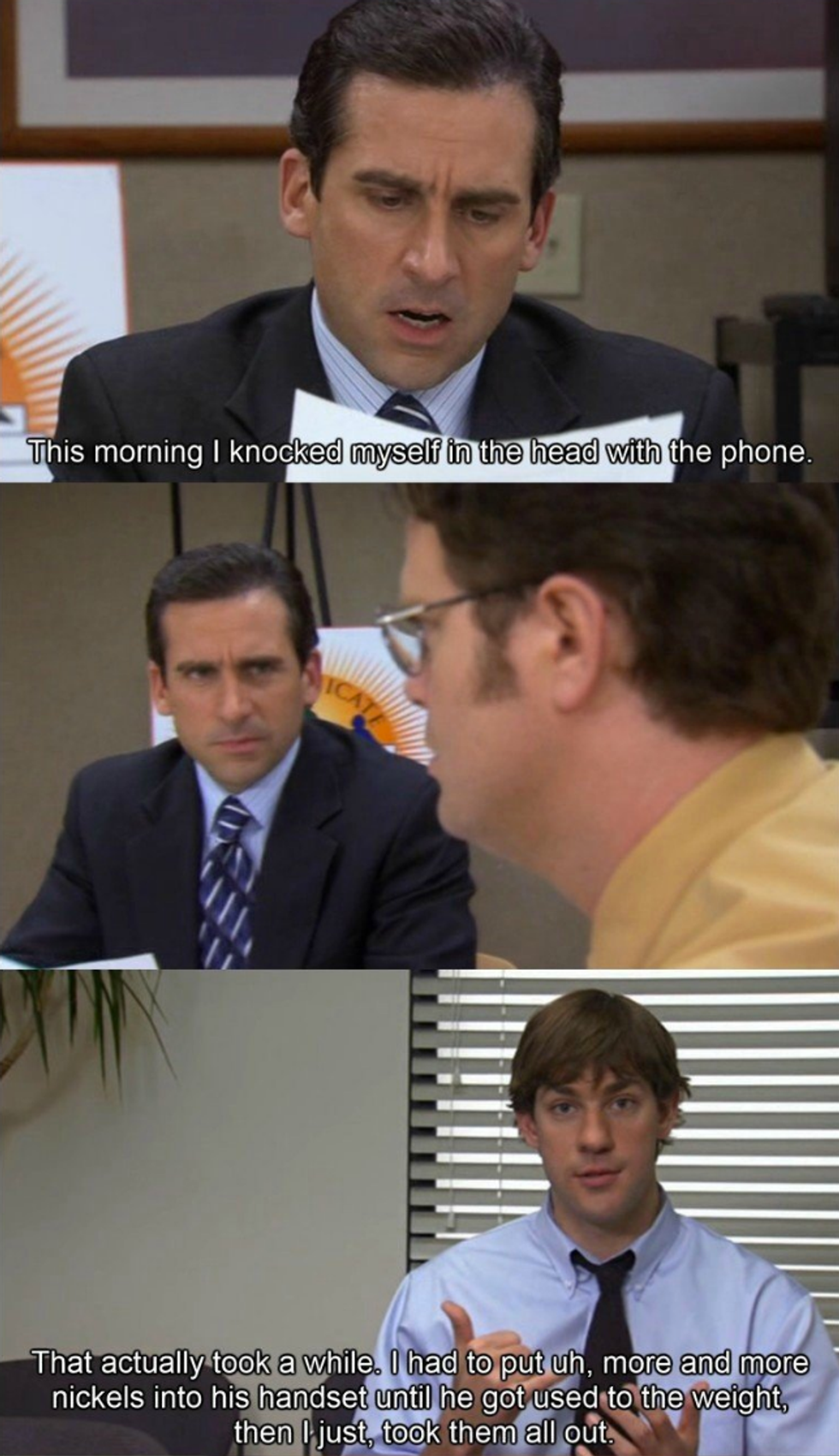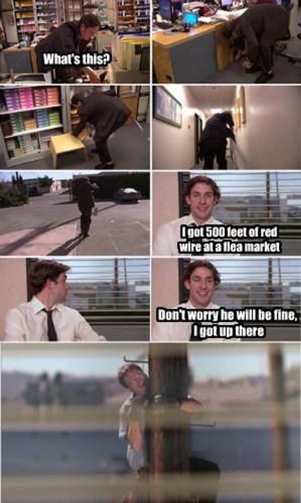 14. When he planted a red wire from Dwight’s desk to the telephone pole.