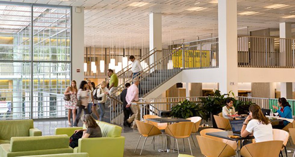 With its many rooms you could spend each day studying in a new place. The B school is great for group projects and quiets out at night for when you need to focus. With such close proximity to Sharp and Monroe it’s a great place with freshman going through their first finals.