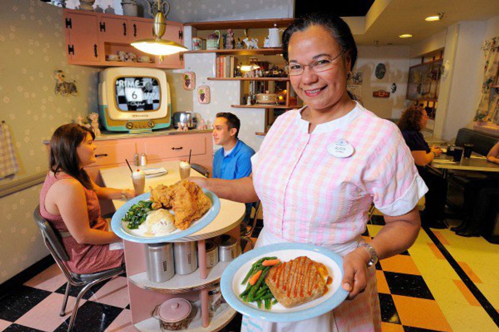Located in Hollywood Studios is the 50’s Prime Time Café, which as its name states, is a café themed in the 50’s, serving lunch and dinner. Complete with all classic 50’s furniture and decorations, the best part of this restaurant isn’t just the comfort food; it’s the wait staff. Not only are they dressed like waiters in the 50’s but they are also all about strict table manners and finishing your plate (that is if you want dessert). If you’re going here for dinner, make sure you are really hungry unless you want to get yelled at for not finishing your green beans.