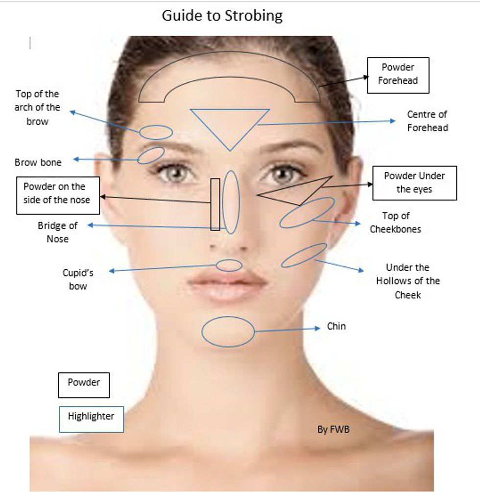 Strobing is a newer technique that involves the use of an extreme shimmering effect on the cheekbones of the face. This look will draw the light and give a slimming effect to the face.